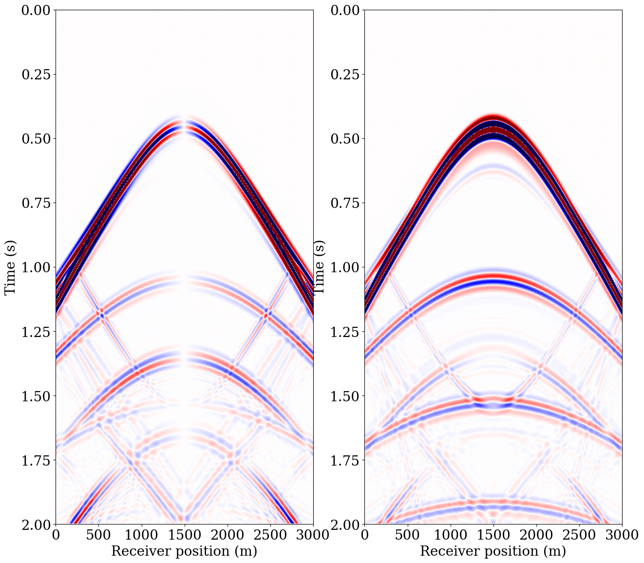 plt.xlabel("Receiver position (m)", fontsize=20)Text(0.5, 0, 'Receiver position (m)')